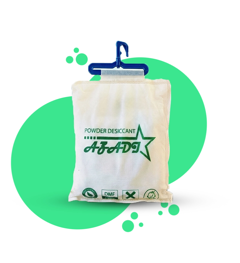 Bột hút ẩm Azadi được thiết kế để hút ẩm vượt qua 200% đến 300% trọng lượng của chính nó.